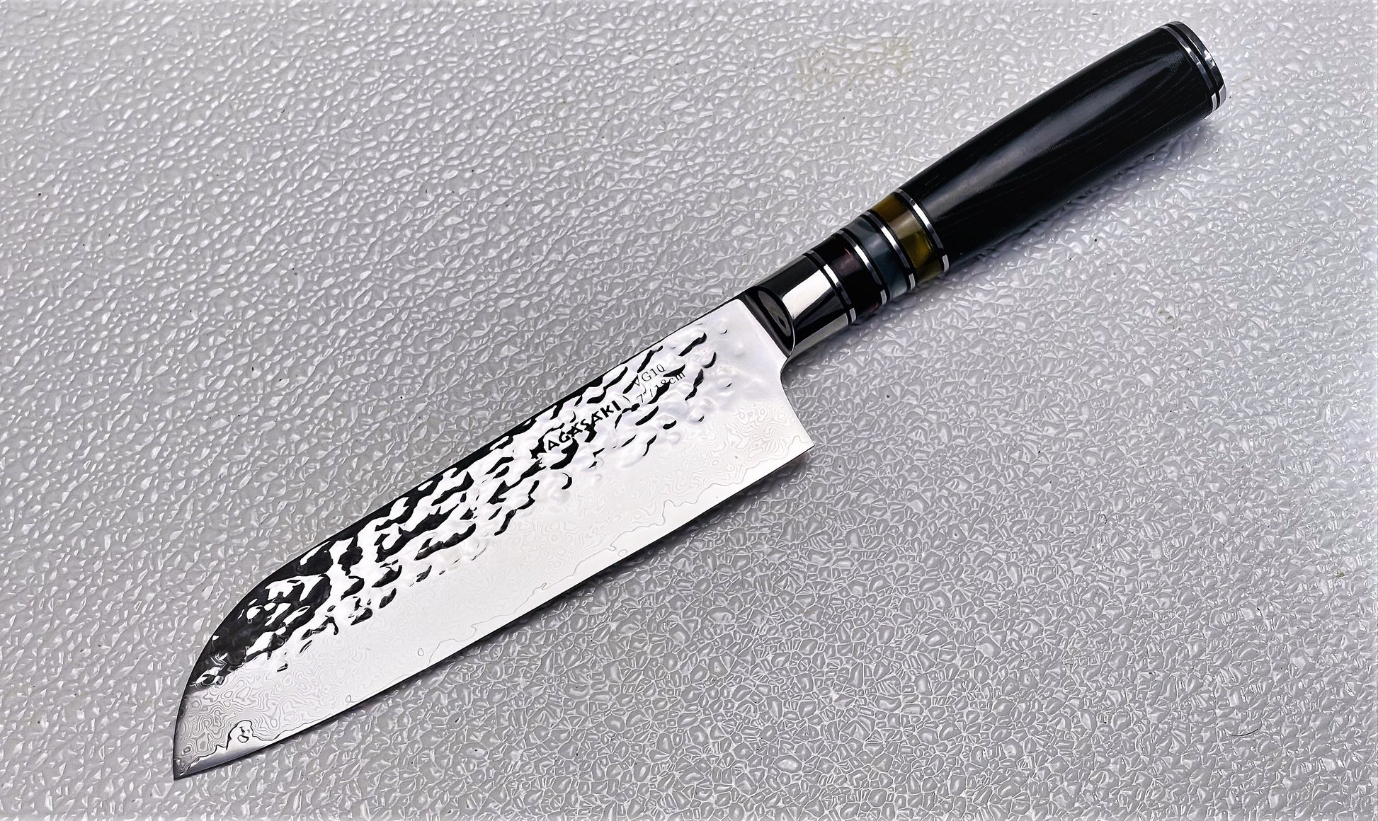 The Santoku knife is an all rounder kitchen workhorse in the japanese kitchen. It can be used for either meat cuttings or for the vegetable preparations.