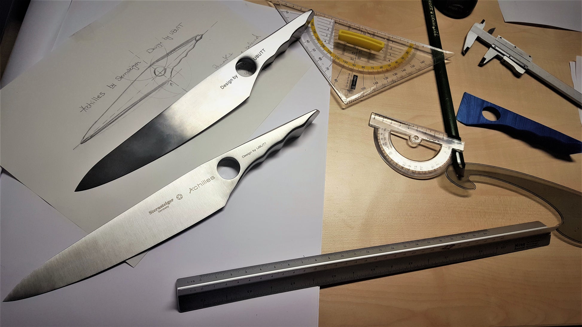 Das Achilles Kochmesser, das Ergebnis einer intensiven dreijährigen Entwicklung in Zusammenarbeit mit Sternsteiger Deutschland und UBUTT Designs, repräsentiert das Nonplusultra in Sachen Küchenmesser. Dieses preisgekrönte Messer kombiniert innovative Technologie mit handwerklicher Perfektion, um ein unvergleichliches Schneideerlebnis zu bieten.