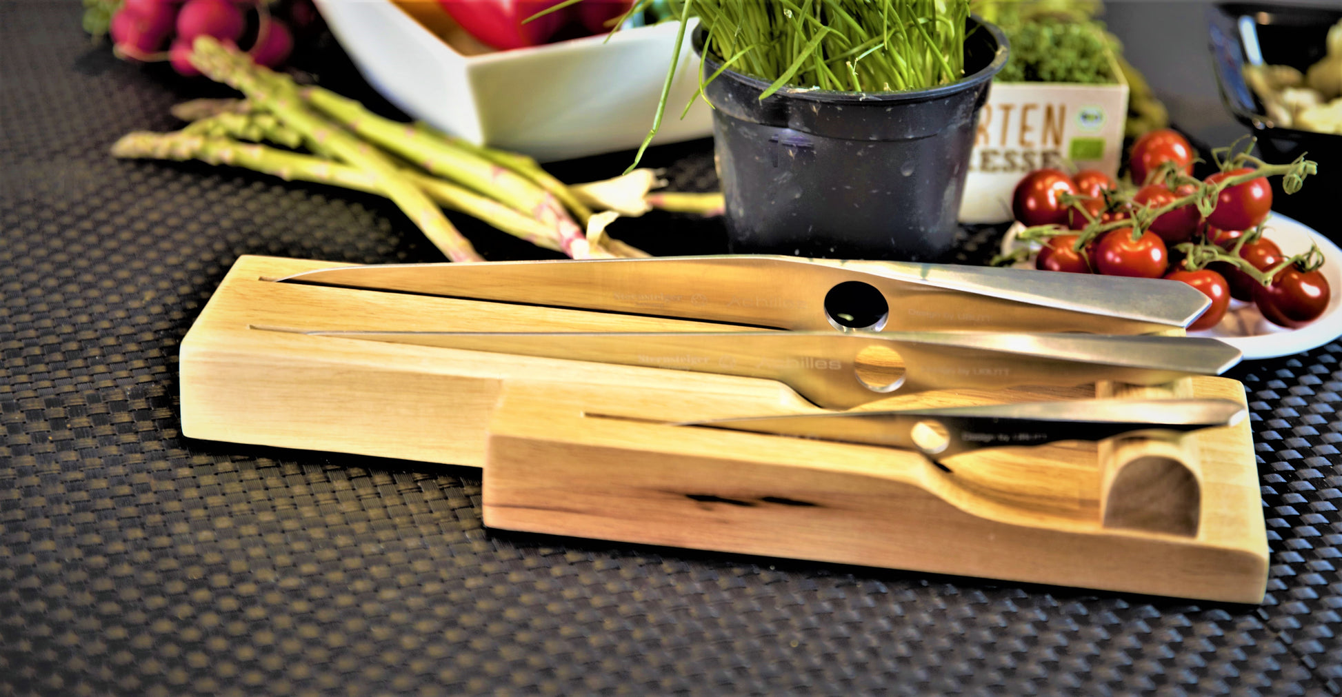 Die Achilles Kollektion, entwickelt in Kooperation mit Sternsteiger Deutschland und UBUTT Designs, ist ein Paradebeispiel für exzellentes Küchenwerkzeug, das sowohl durch herausragende Qualität als auch durch innovatives Design besticht. Dieses umfassende 4er-Set umfasst alles, was Sie für die professionelle Küchenarbeit benötigen, und verbindet perfekt Funktionalität mit stilvoller Ästhetik.