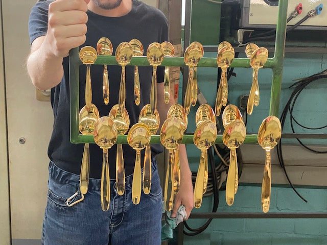 Cada cubertería está hecha de acero inoxidable 18/10 de alta calidad, conocido por su resistencia a la oxidación y durabilidad. El baño de oro de 22/24 quilates añade un toque lujoso que no sólo agrada a la vista sino que también mejora la calidad y durabilidad de los cubiertos.