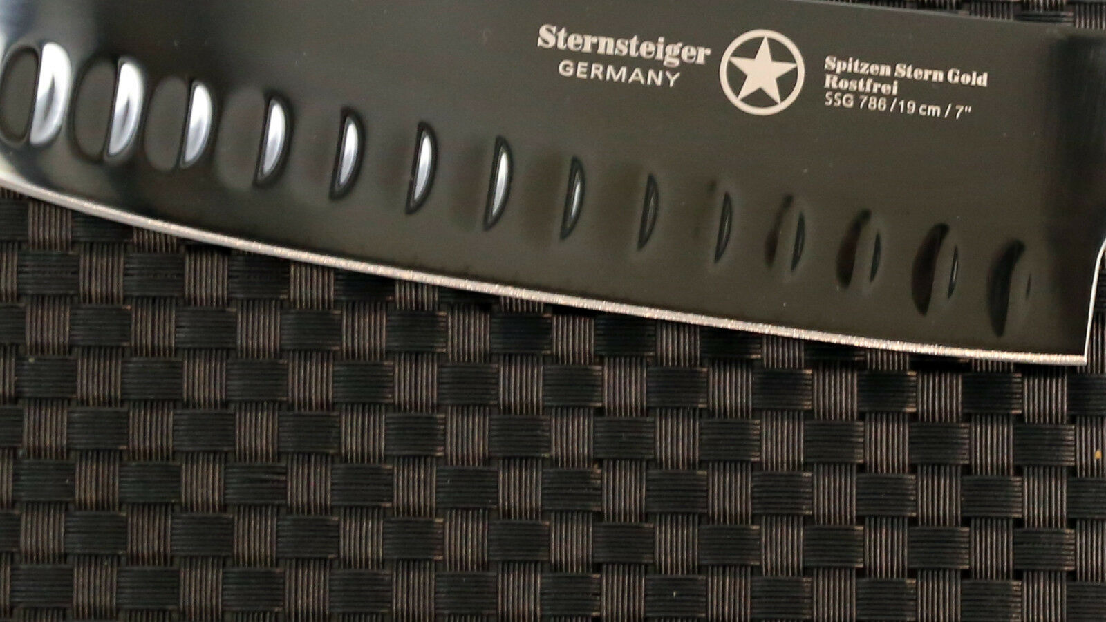 Los cuchillos de la colección Sternsteiger Titanium están fabricados con una combinación avanzada de titanio y acero inoxidable. Estos materiales proporcionan una nitidez y durabilidad inigualables sin dejar de ser sorprendentemente livianos. El cuchillo Santoku con su hoja de 18 cm de largo y filo hueco está especialmente diseñado para cortar carne, pescado y verduras, con el filo hueco minimizando la adherencia de los alimentos.